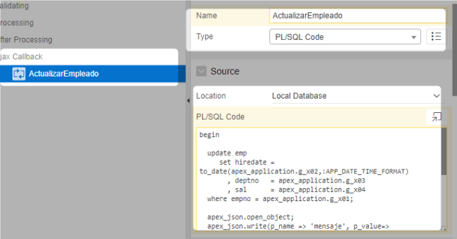 apex_json.write(p_name => \'mensaje\', p_value=> \'Actualizado correctamente\');