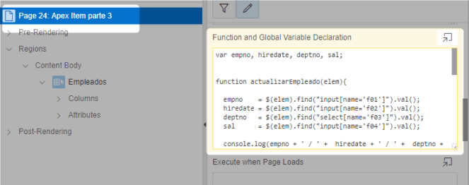 Luego crearemos una accion dinamica para capturar el cambio de algun apex item en la region del reporte.