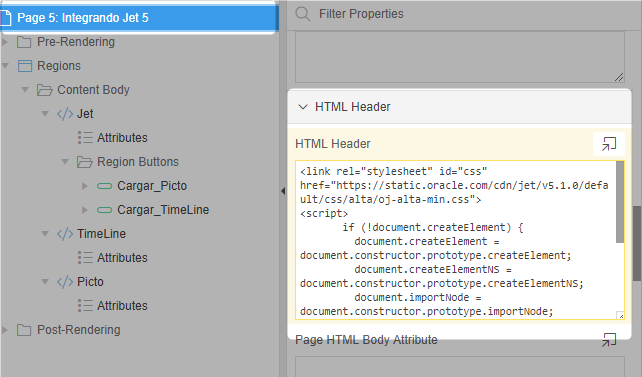 Agregamos la referencia al CSS que utiliza oracle JET, esto lo pegamos en HTML Header