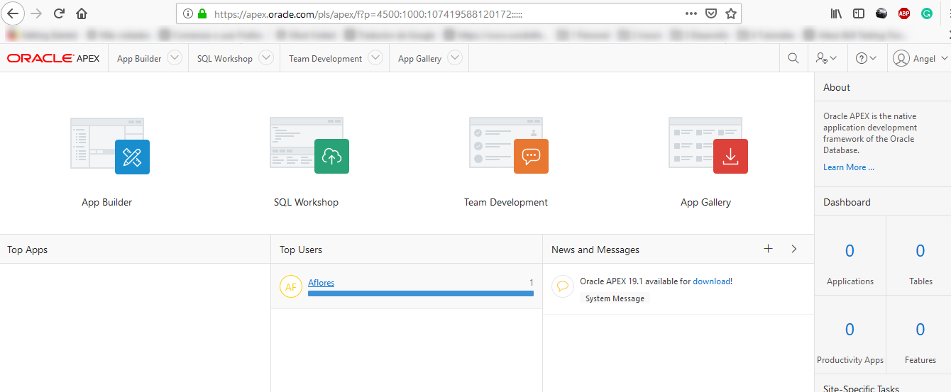 Para empezar nuestro desarrollo en APEX, requerimos un espacio de trabajo (Workspace).