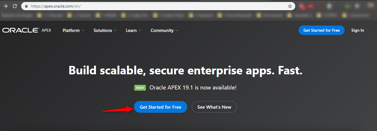 Para esto nos dirigimos a apex.oracle.com y le damos en \”Get started for free\”
