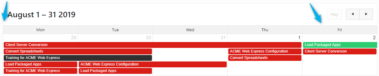 En el inicio de la pagina: en la sección: \”Execute when Page Loads\”$( document ).ready(function() {apex.region(\”calendar_demo1\”).widget().fullCalendar(\”option\”, {'buttonText': { today: 'Hoy', month: 'Mes', week: 'Semana', day: 'dia', list: 'lista' } }); });