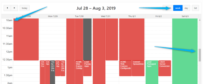 Posición del Scroll, cuando te muevas de una pestaña de semana o día, el scroll estará predefinido en la hora indicada.