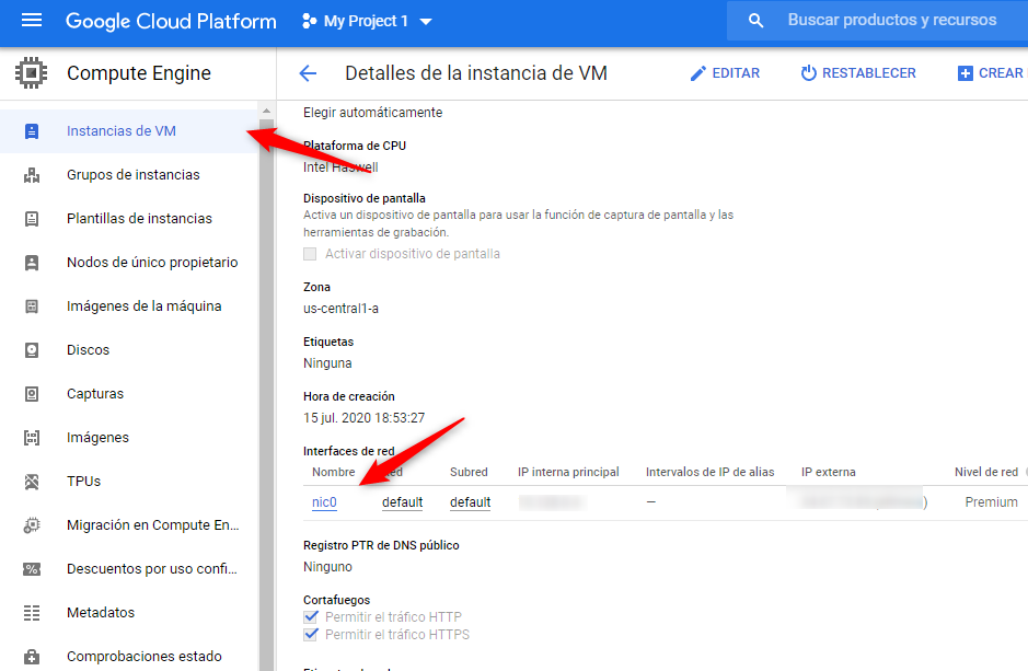 Seleccionamos nuestro compute engine e Iremos a la configuración de red