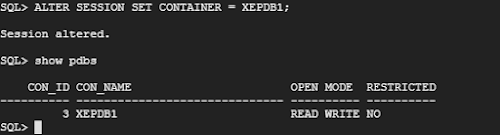 ALTER SESSION SET CONTAINER = XEPDB1;
