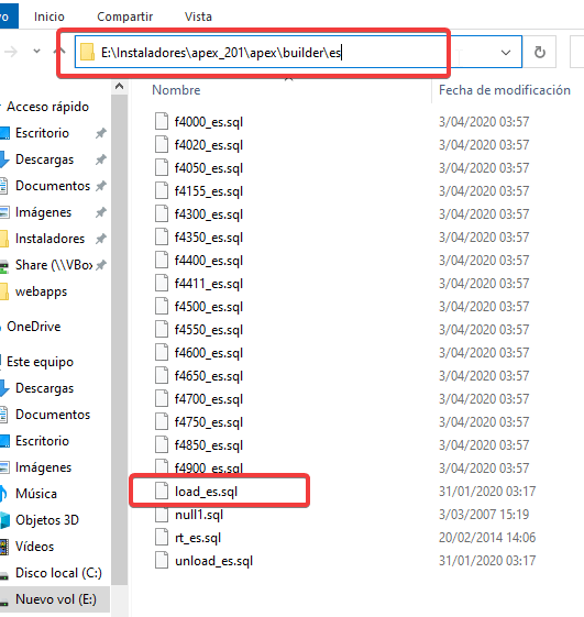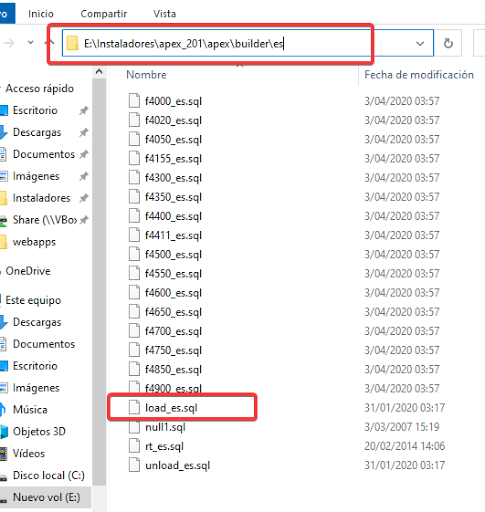 Este archivo lo pueden encontrar en la carpeta de APEX => Builder => y seleccionan la carpeta con el lenguaje que desean instalar.