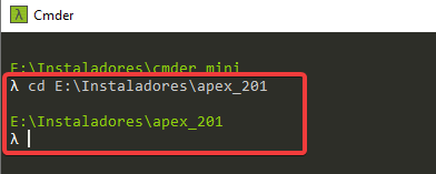 Pasamos a descomprimir y abrimos una ventana cmd y nos situamos en la ruta donde está descomprimida nuestra carpeta APEX