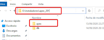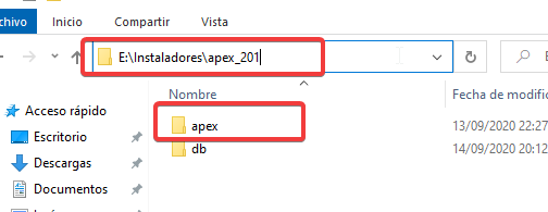 Luego procedemos con instalar APEX