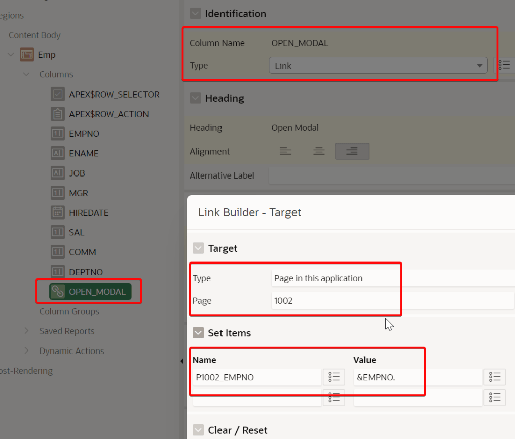 Para este ejemplo usaremos la tabla demo EMP, en la cual basaremos nuestro Interactive Grid.