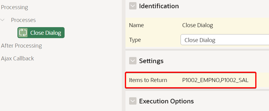 Creamos una página modal, agregamos 2 items, y los agregamos retornamos el valor en un acción de Dialog Close.
