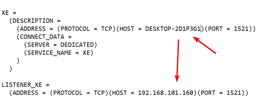 Editan el archivo tnsnames y donde tenían el nombre de la PC lo cambian por su IP. En ambos sitios