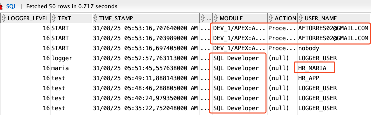 Eso nos permitera capturar el real usuario conectado asi estemos en SQLcl O SQL Developer.