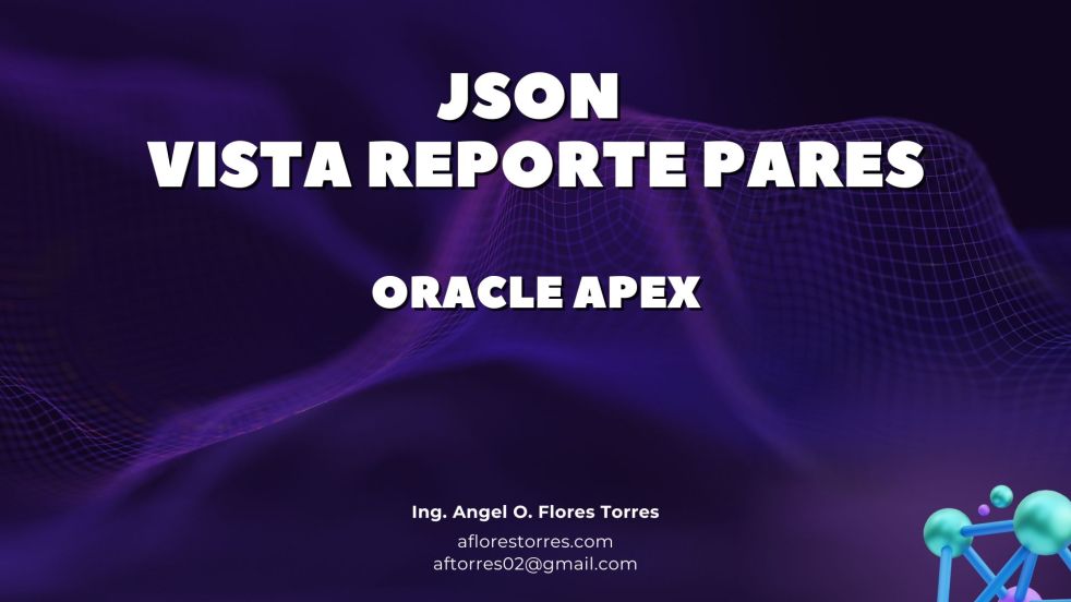En este ejemplo, veremos cómo mostrar un elemento en formato JSON en una vista de pares dentro de un reporte interactivo. Aquí, se presenta todo el código. Primero, necesitaremos crear dos objetos para almacenar los datos temporalmente. CREATE OR REPLACE TYPE t_key_value_pair AS OBJECT ( key_name VARCHAR2(4000), key_value CLOB ); / CREATE OR REPLACE TYPE… Continue reading JSON vista reporte pares